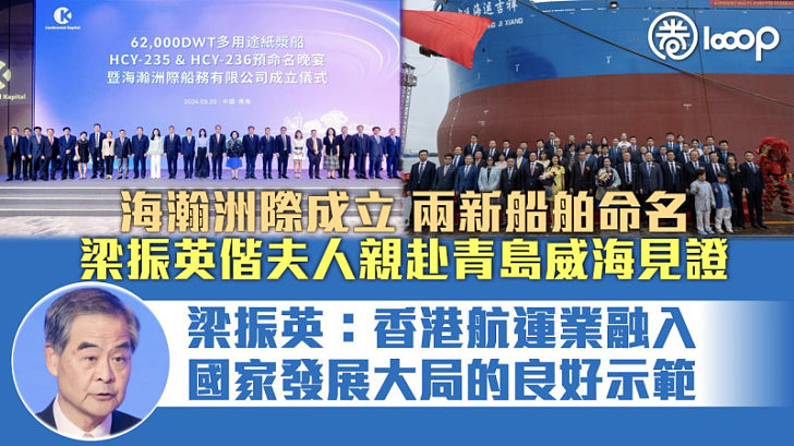 【意義重大】海瀚洲際成立開張兩新船命名 梁振英偕夫人親赴青島威海見證、梁振英:港航運業融入國家發展大局的良好示範