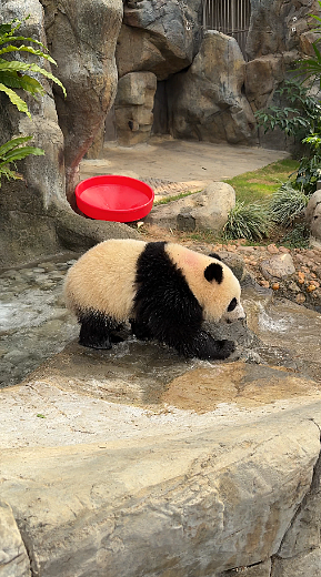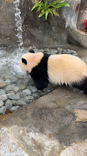 兩隻大熊貓寶寶近日喜愛在小溪瀑布玩樂。牠們現在的強壯及靈活程度,可以探索棲息地內較為複雜的豐容設施,促進身心發展。牠們亦已由之前進食竹碎和紅蘿蔔絲,逐漸過渡至進食「窩窩頭」及整支竹筍等,踏入飲食發展的一個重要里程。