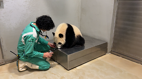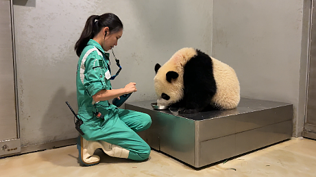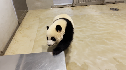 此外,加加和得得開始接受基本護理訓練,包括「叫喚」訓練(recall training)。當護理員叫牠們的名字時,會鼓勵牠們前往指定地點,例如由棲息地至後勤設施。若大熊貓寶寶成功回應,護理員會以「正面獎勵」的方式給予牠們喜愛的食物,例如紅蘿蔔和竹筍。這種訓練有助牠們學習自行回到指定位置,而無需由護理員親自引領。
