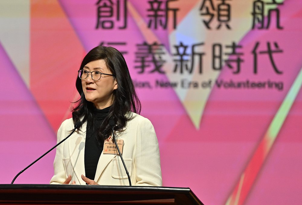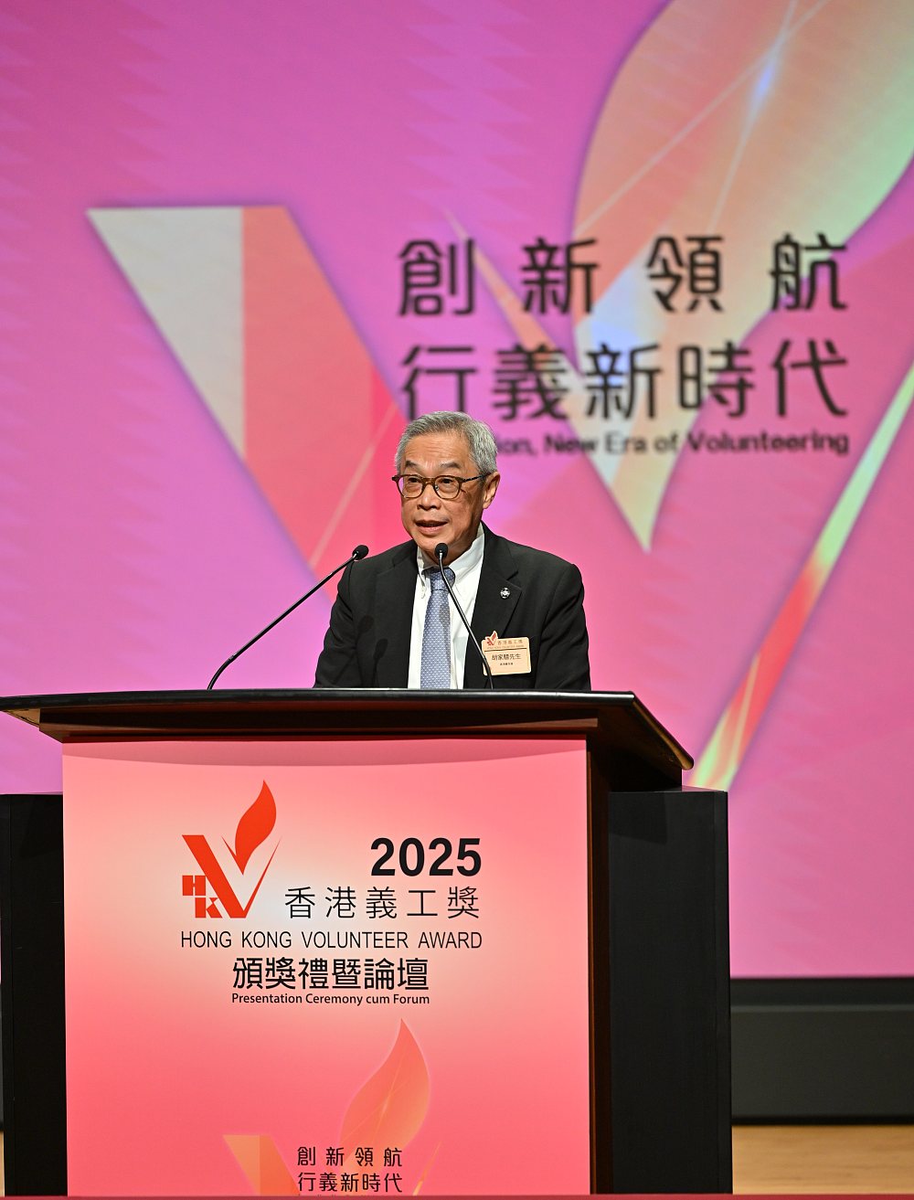 義務工作發展局主席彭韻僖在致辭時表示:「今年我們不單止會頒發超過4萬個獎項,更加首次增設論壇環節,很榮幸邀請到專家及學者參與,分享義工經驗和創新理念,一同探索義工服務的新方向,攜手將『人人行義』的精神推得更廣、更遠。」