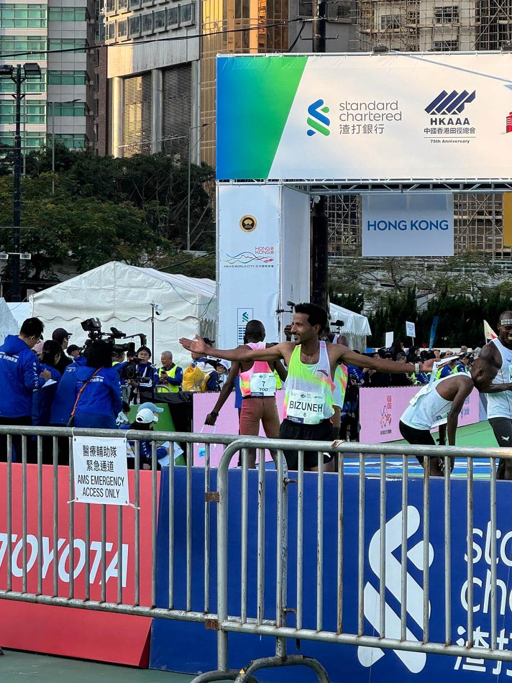 香港今日天朗氣清,溫暖乾燥,有利一眾跑手在更舒適環境下作賽。經過角逐,來自埃塞俄比亞的比蘇尼以2小時9分39秒衝線,相隔9年再次在全馬稱王;女子組冠軍被巴林跑手舒達伊獲得,成績為2小時27分03秒。