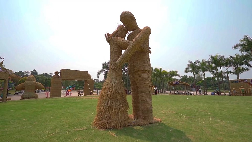 除了賞梅,數十位藝術家以湖北本地稻草製作巨型龍貓、田園耕夫、童話精靈等裝置,散落於雪地之中,形成獨特景觀。不少家庭專程前來,一邊賞雪中梅,一邊玩味稻草藝術。遊客表示:「本來是衝著梅花來的,沒想到雪後稻草藝術節這麼驚艷。」
