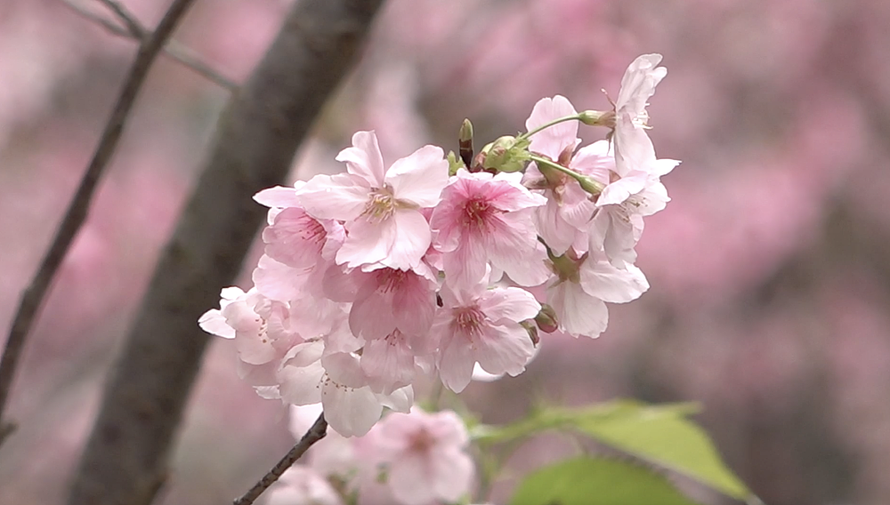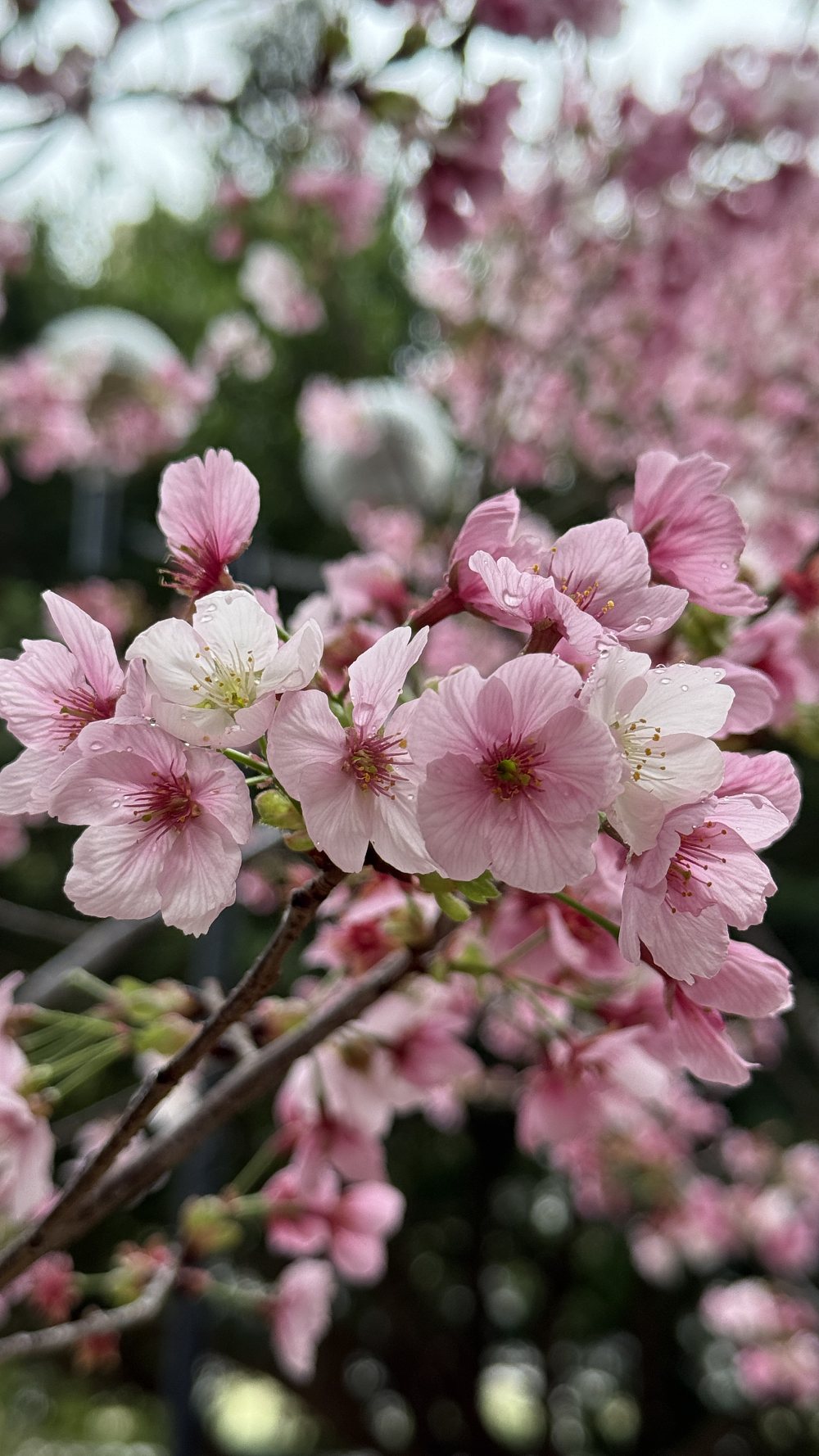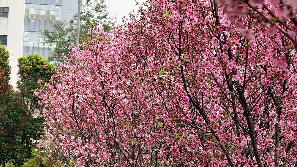 在沙田石門安景街公園,10多棵櫻花同時盛放,連日來吸引大批市民前往賞櫻兼打卡。