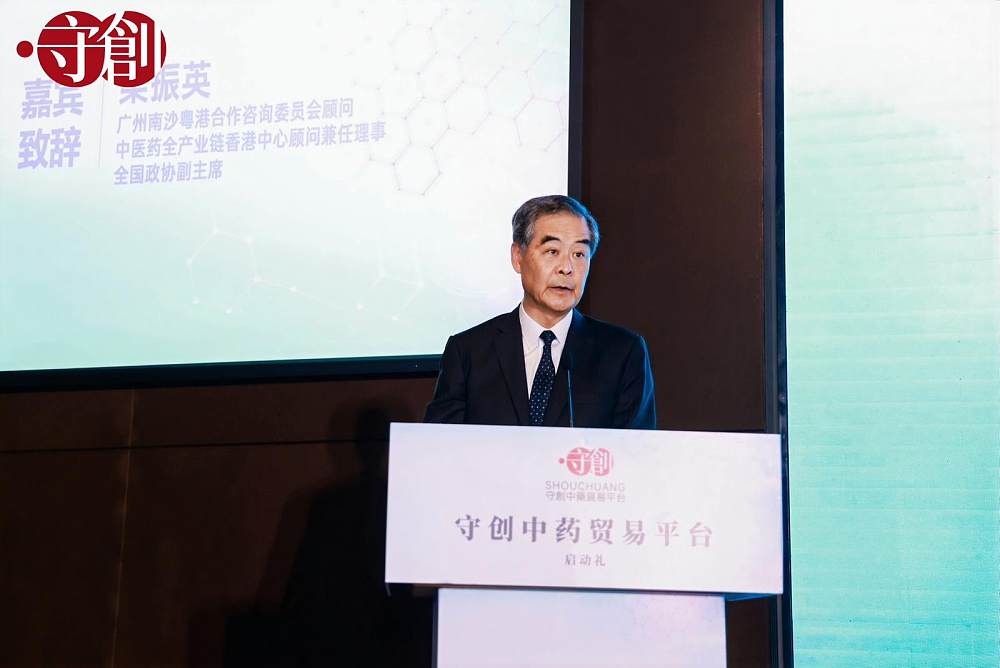 梁振英在南沙會場致辭時說,「習近平主席指出,『要遵循中醫藥發展規律,傳承精華,守正創新』。平台取名「守創中藥貿易平台」,就是要做到「守正創新」。他強調:「有好藥材才可以有好中醫和好成藥;有好市場才可以買到好藥材。因此我們要搭建藥材質量有保證、買賣兩方集中、買賣效率高、供需和價格訊息準確、及時、透明和全面,成交時間成本低的買賣平台。」