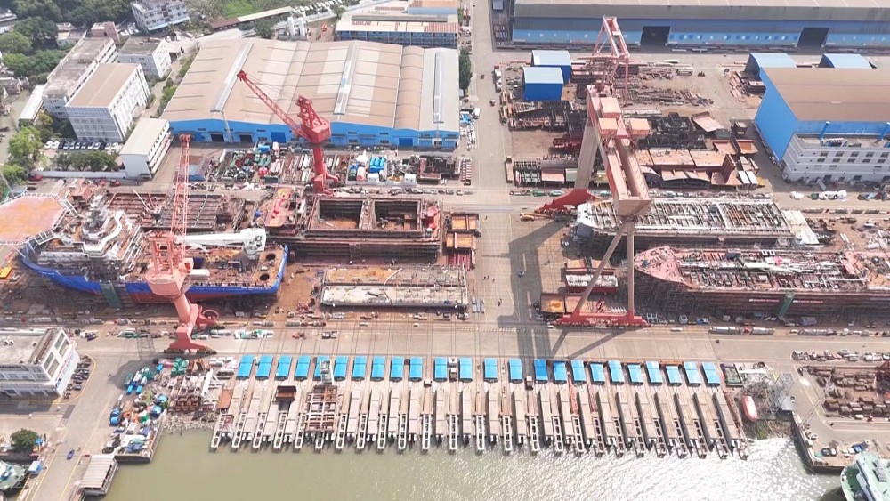 走進生產核心區域,多款高端海工特種船舶及智能裝備正在加緊趕製。目前,海洋工作船、液貨運輸船及港航施工船三大主力船型已在多個領域落地應用,成為海上工程建設不可或缺的力量。