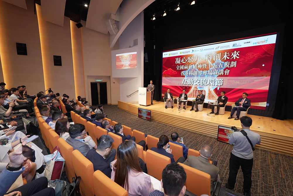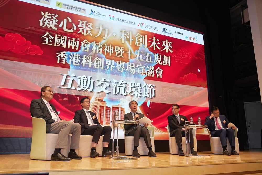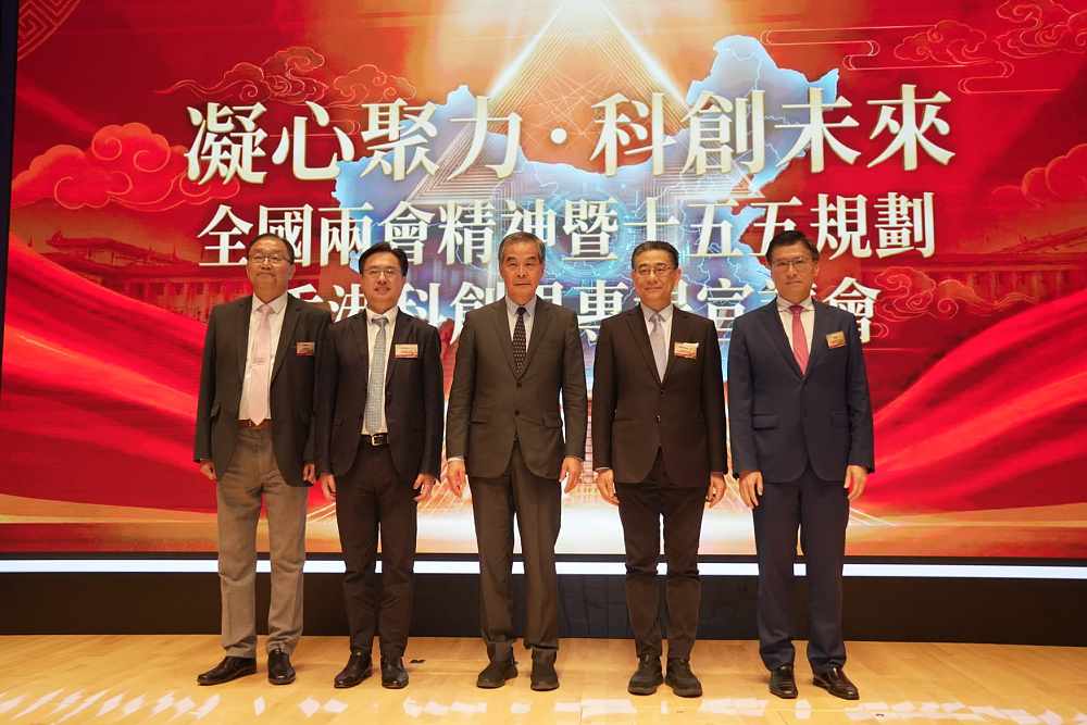 「全國兩會精神暨『十五五』規劃香港科創界專場宣講會」今日(17日)在香港科學園舉行,全國政協副主席、大灣區國際信息科技協會主席梁振英,港區全國人大代表、互聯網專業協會會長冼漢迪,港區全國人大代表、大灣區國際信息科技協會會長楊德斌,全國政協委員、立法會議員、香港資訊科技聯會榮譽會長黃錦輝,以及立法會議員、香港資訊科技聯會會長邱達根,向在場逾300位科創界人士分享了全國兩會的重要精神,以及國家「十五五」規劃的啟示,特別在科技、教育、人才方面,香港的角色、一體化發展和機遇,以及如何服務國家發展大局。