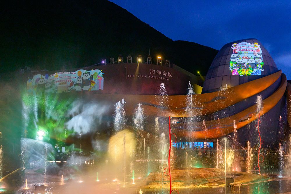 隨著夜幕降臨,喜慶氣氛在夢幻水都人工湖推到頂點。「光影盛夜」— 大熊貓生日特別版經已閃耀登場,「加加」和「得得」的大型光雕投影,加上震撼的水幕特效和舞動噴泉,在輕快樂章襯托下,締造一場難忘的奇幻光影體驗。