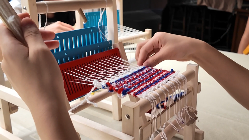 兩位蜀錦省級非遺傳承人每日默契配合,操作織機,為遊客演示古老織造技藝。博物館還開設織造體驗、蜀錦香囊、蜀繡團扇等研學項目,滿足不同年齡及興趣的體驗者需求。有研學項目體驗者表示:「因為以前一直都是在電視上、老師的介紹裡了解蜀繡,今天親自來體驗內心很激動。」
