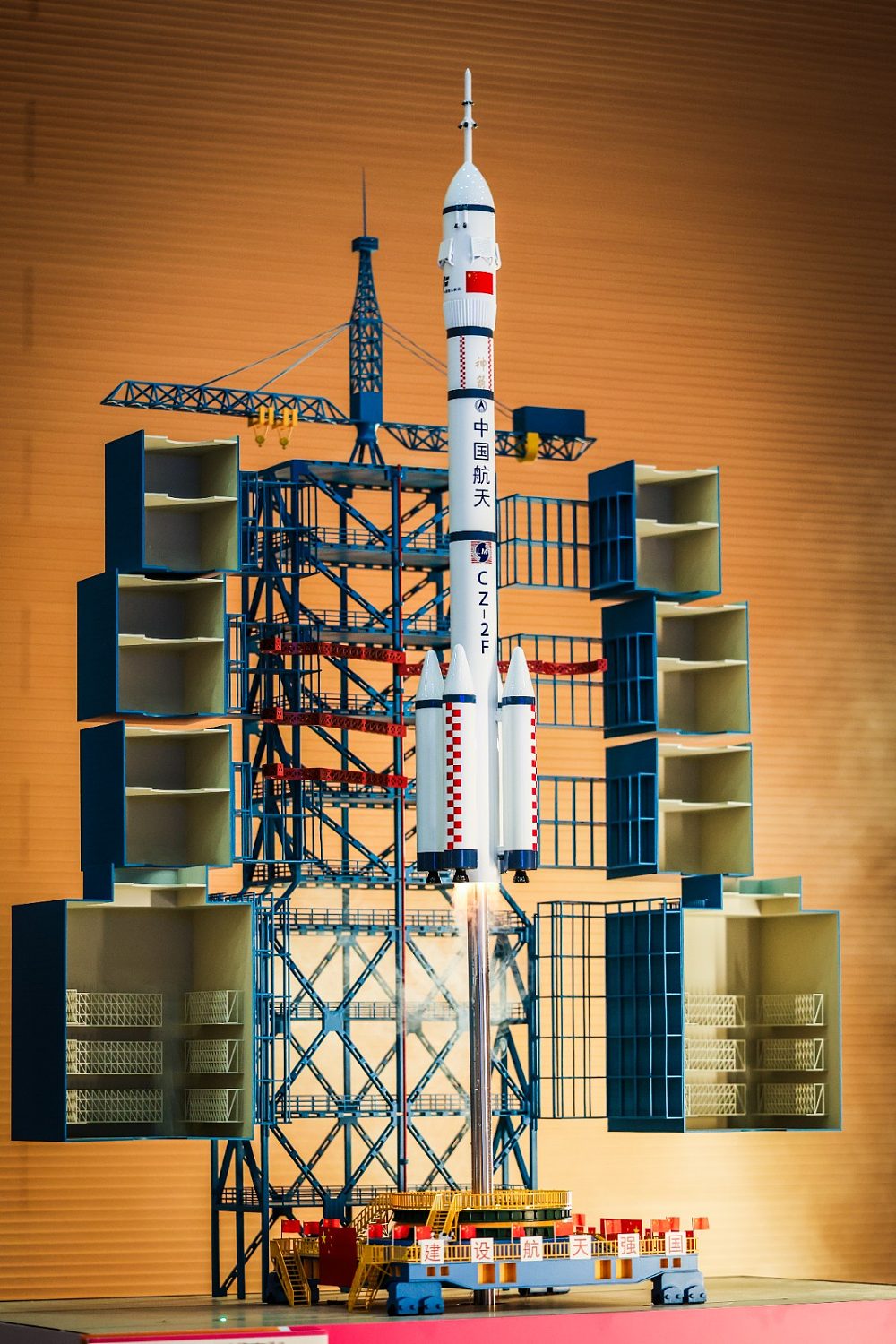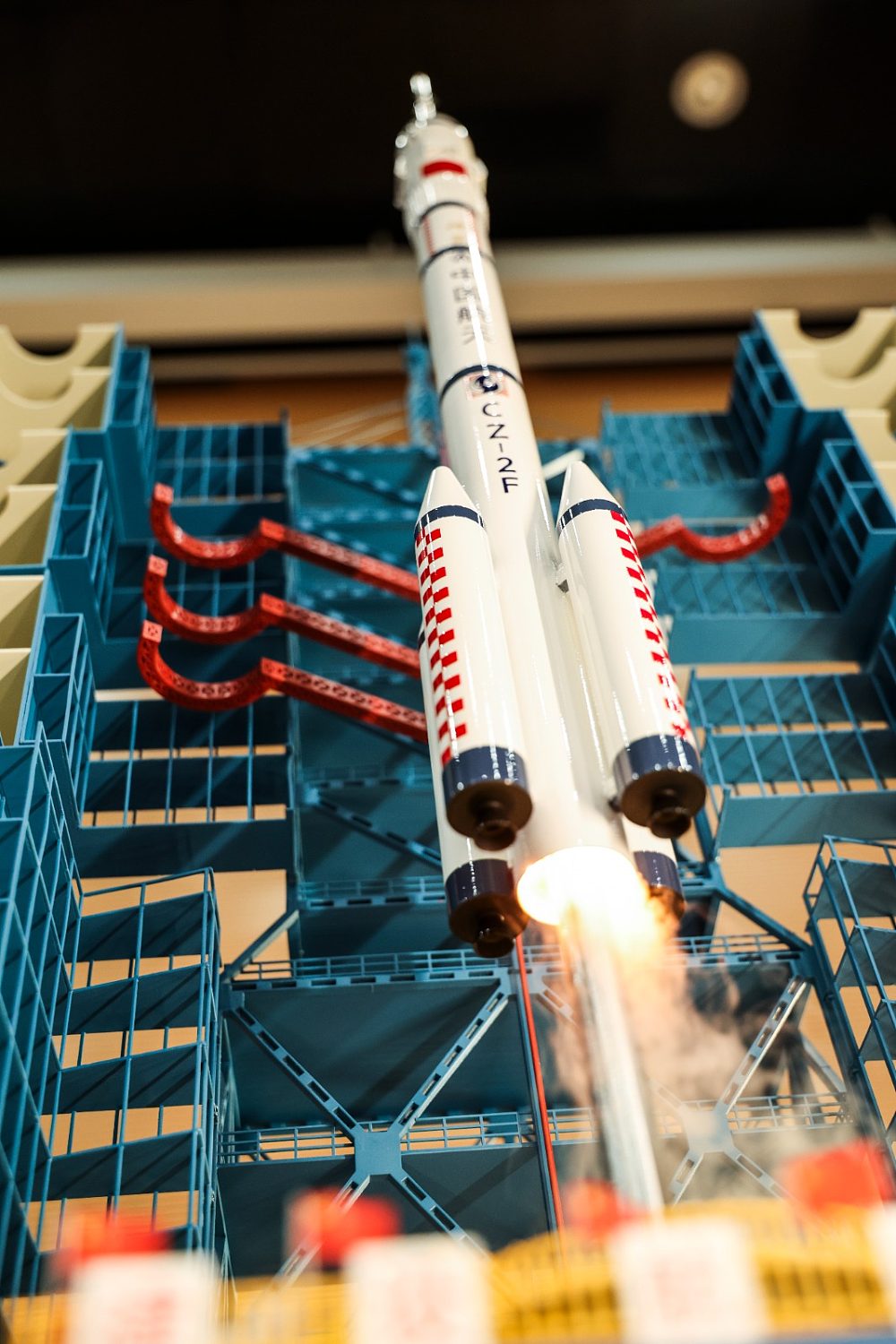 作品模擬2024年4月25日晚神舟18號升空的震撼場面。微型火箭約1米高,發射升空至1.5米時會噴出火光及熱空氣。這是中國第13趟載人任務,搭載了3名太空人。