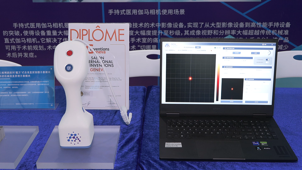 粵港澳大灣區國家技術創新中心研發的掌上型醫用伽馬相機特別引人注目。它將傳統重達2噸、需佔據整個房間的大型伽馬相機設備,成功輕量化至僅有800克的手持式設備。這台能夠探測放射性示蹤劑分布的先進成像設備,不再被束縛於特定的核醫學科,而是可以直接被帶入手術室,為醫生提供實時的術中導航,賦予他們一雙能夠看透組織的「透視眼」。
