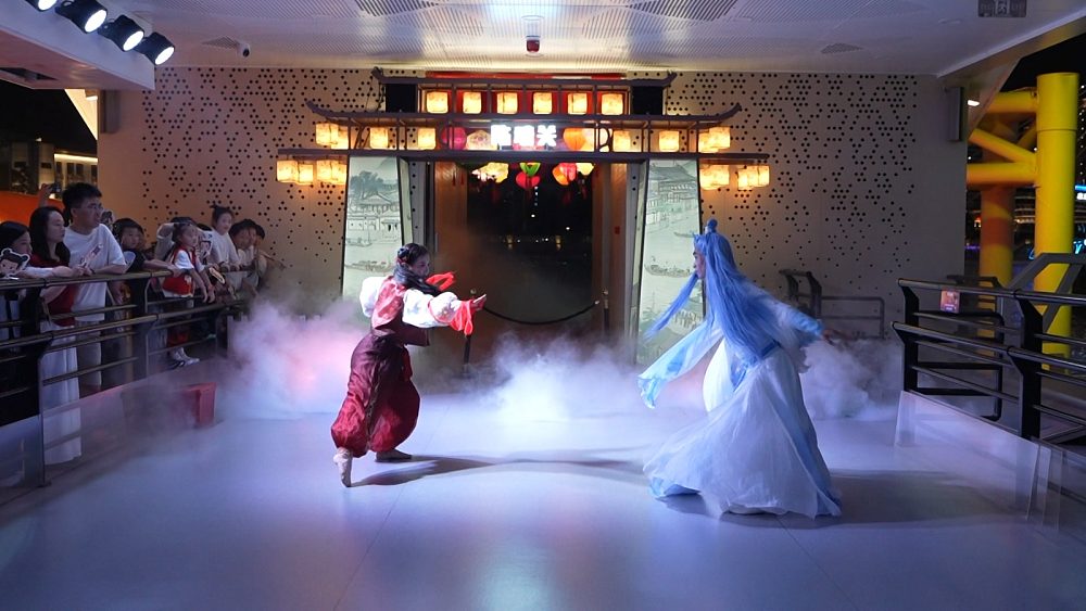光影交織的都市夜宴更帶旺海河遊船,遊船航程大約50分鐘,伴有講解服務。夜航時可以欣賞到「哪吒鬧海」「百龍戲水」等主題燈光秀。坐在船上吹著涼爽的風,一程就可看盡兩岸風光,非常愜意。