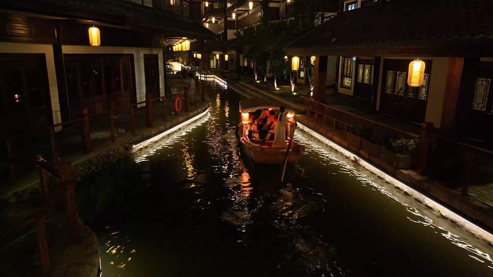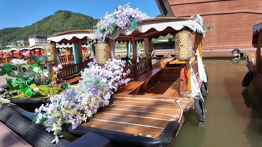 遊客李女士說:「來到這邊,古色古香,韻味還非常足,而且地勢非常平緩,像這些老年人,坐在這裏面聊聊天,說說話,逛一逛,待會還會再去坐這個搖櫓船,所以說我感覺這個地方,還是非常適合度假的。」