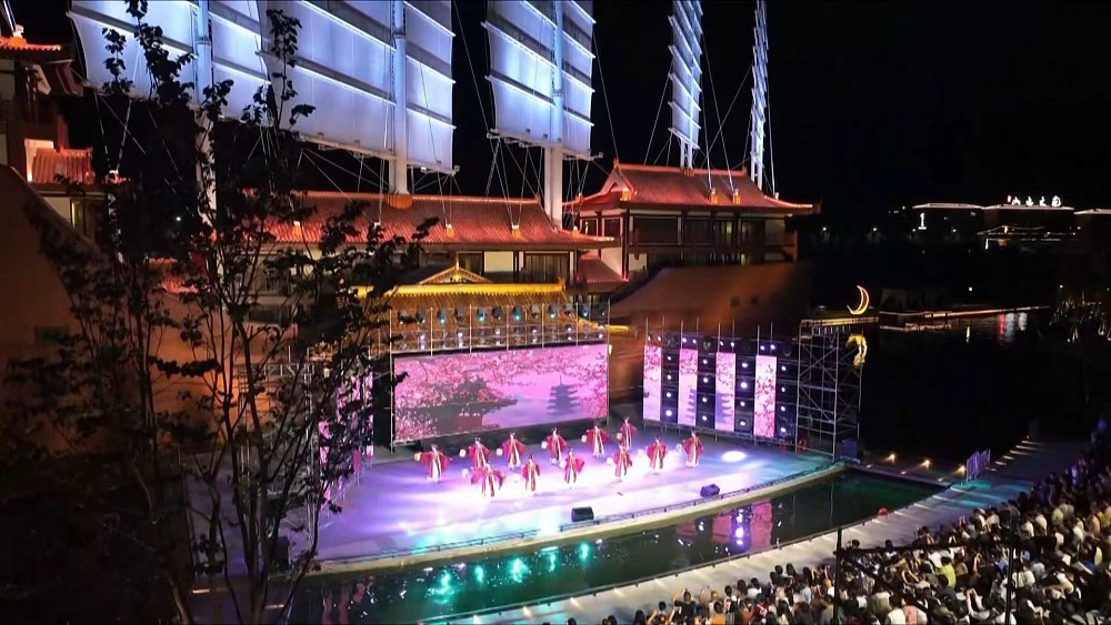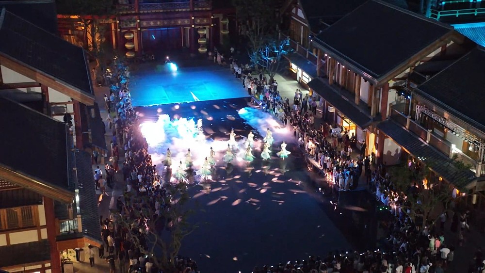 入夜後的小鎮,演繹出古典與現代交融的新體驗。街巷中,盛唐裝扮的NPC穿梭互動;夜幕下,「洛水伊人」翩躚起舞,提籃貨郎吆喝聲聲,仕女手持宮燈巡遊,更有投壺、擲骰等傳統遊戲,吸引遊人駐足參與。