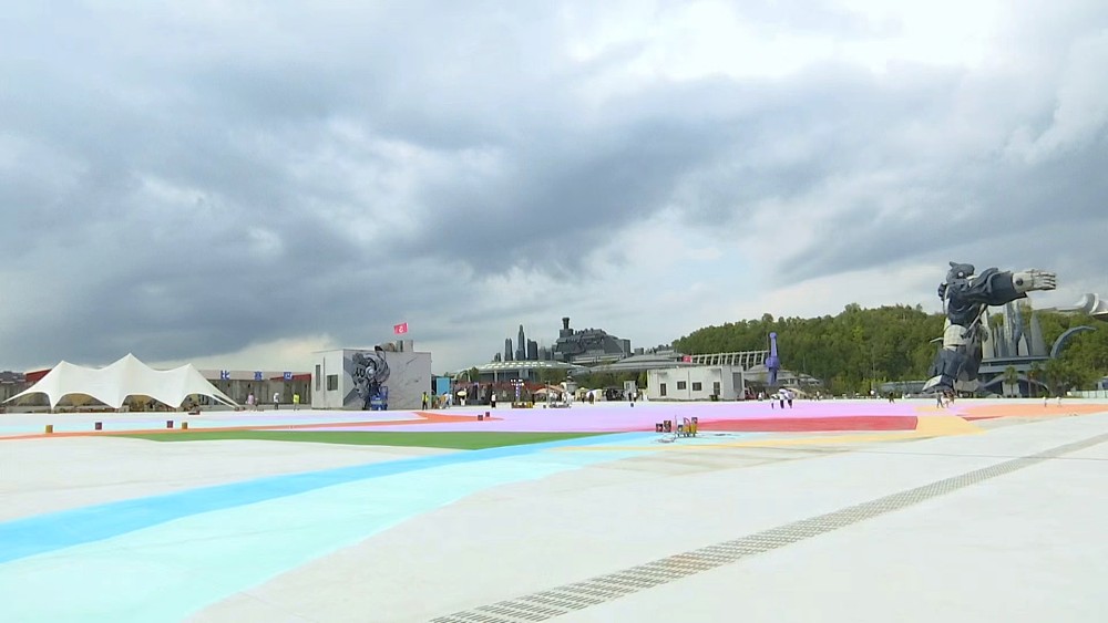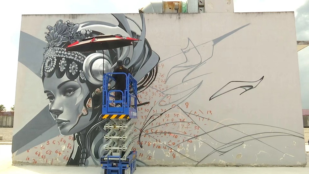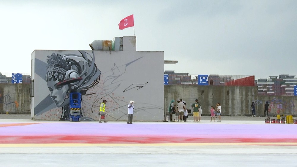 貴州雙龍航空港經濟區商務和文旅局副局長丁乃憲說:「這次我們是平整出來了我們科幻谷園區的二期的廣場,作為未來雙龍演藝活動和相應的市集等等的一些集結地,主要是通過塗鴉這樣一種形式,邀請到了全國各地知名的塗鴉藝術家,以貴州的生態文化、民族文化等等作為主題,創作一些塗鴉藝術作品。」